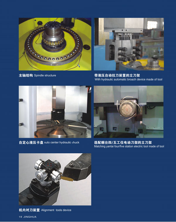- 6、用戶可根據(jù)需要選擇方滑枕固定刀架、手動五工位刀架或煙臺環(huán)球產(chǎn)電動四/五工位刀、BT50內(nèi)藏拉刀機構(gòu)滑枕。